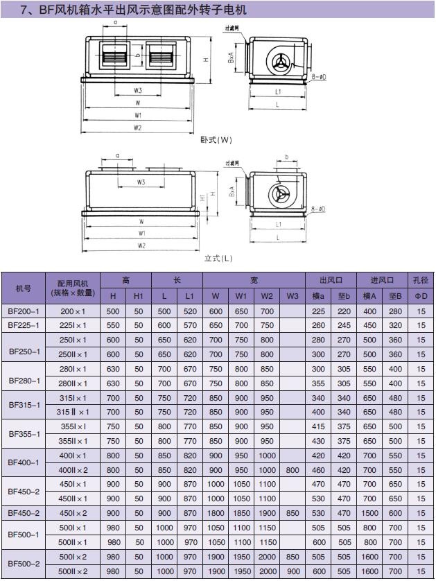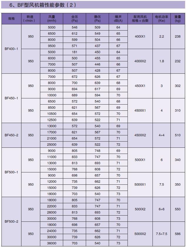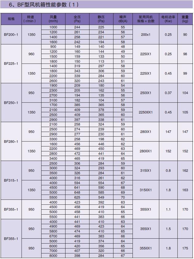 1.1.BF型風機箱葉輪采用前傾式多翼葉輪和低噪聲外轉子電機,電機與葉輪為直聯,風機噪聲比皮帶傳動式風機箱低。